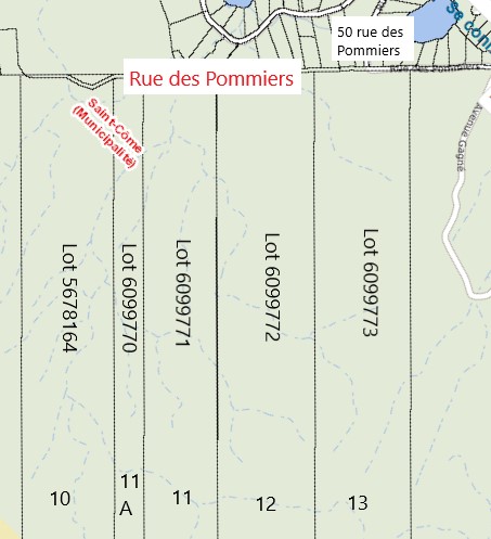 Les terrains doivent avoir une superficie de 43 200 pi.c. +- chacun. Un puit artésien et une fosse septique devront y être installés par le propriétaire du terrain. Vous aurez accès à l’électricité à compter de 2024. Le déboisement de votre site est laissé à votre discrétion, mais dans le respect des lieux.